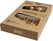 Длетата са част от серията Profi, където ще откриете още ръчни инструменти. ... Длетата за дърворезба на Narex Bystrice разполагат с остриета, които са изработени от хром-ванадиева стомана и са термично обработени до 61 - 62 HRC твърдост. Притежават заточени и покрити с абразивна паста и арканзаски камък ръбове и ергономични дървени дръжки. Комплектът е съставен от 2 длета с широчина на острието 3 mm и по 1 длето с широчина 4, 6 и 8 mm. ... |