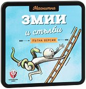 Магнитната игра "Змии и стълби" от "The Purple Cow" е подходяща за игра както вкъщи, така и навън. Тя е предназначена за деца над 3-годишна възраст и в нея могат да участват до 4 -ма играчи. Играта е интересна, тъй като може да се играе по време на път, защото се състои от метална кутия, с магнитно игрално поле от вътрешната си страна, 4 магнитни пионки и зар. Правила на играта: Преди началото на играта участниците избират цвят на пионката си. Играта започва най-малкият сред тях. Останалите се редуват по часовниковата стрелка. Всеки от играчите хвърля зарчето и придвижва пионката си с толкова ...