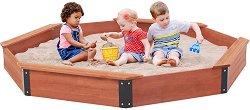 Едно от любимите занимания на малчуганите е играта в пясъчника и създаването на красиви фигури от пясък с помощта на различни формички. Поради тази причина от Ginger Home предлагат на вашето внимание дървен пясъчник с покривало, което да предпазва пясъка от замърсяване и дъжд. В долната част, той има подплата. Дървесината, от която е направен пясъчникът, не е боядисана, а е оставена в приятен натурален вид, което помага на пясъчника да намери своето място в почти всеки двор или градина. Конструкцията е укрепена с метални стълбове в ъглите, за максимална стабилност. Формата на сглобения пясъчник е осмоъгълник, като на ...