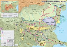 Стенна историческа карта на Руско-турската освободителна война (1877 - 1878) и врезка - Априлско въстание, 1876 г. Характеристики: географска мрежа; хидрография; територия на Османската империя, автономни и други територии, райони на действие на български чети, райони на съсредоточаване на войски; граници на зависими и независими държави; движения на руски, османски, сръбски, румънски войски и българското опълчение; битки и обсади; столици и градове; надписи на хидрография, държави, автономни области и други; легенда. Характеристики на врезката: географска мрежа; хидрография; територия на Османската ... |