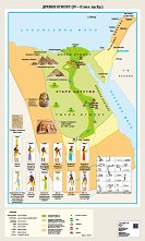 Характеристики на карта "Египет и Двуречието": географска мрежа; хидрография; релеф на територии от Египет, Арабския полуостров и Двуречието, представен чрез хипсометрично оцветяване; пустини; съвременни държавни граници; напоителни и плавателни канали; търговски пътища; столици и градове; находища за добив на злато, мед, алабастър, варовик, смарагд, аметист, гранат, тюркоаз, диорит, гранит и пясъчник; надписи на хидрографията, орографията и други; легенда. Характеристики на карта "Египетско царство": географска мрежа; хидрография; територии на Старото, Средното и Новото египетски ... |