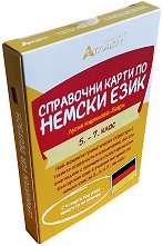 Справочните карти по немски език съдържат най-важните граматически структури с техните особености и изключения, богато онагледени с примери и съпоставени към българския език в учебния материал по немски език за 5. клас, 6. клас и 7. клас. Вложени са в екологична и естетически изработена кутия от картон за ежедневно и лесно ползване и дълготрайно съхранение. Съдържание на справочните карти: Спрежение на глагола. Спрежение на глагола, промяна на гласната. Просто изречение. Съобщително (разказно) изречение. Въпросително изречение. Подбудително (заповедно) изречение. Съществително име. Род на съществителното име. ... |