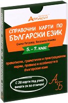 Съдържанието на картите представя най-важното за правописните, граматичните и пунктуационните норми, правила и особености в българския език изучавани от учениците в 5. клас, 6. клас, и 7. клас. Картите са номерирани и номерацията следва последователността на изучаване на учебния материал в училище. Всяка карта съдържа цветна таблица, в която е дадена синтезирана информация. На гърба на картата е изписан номер и темата, към която се отнася съдържанието на картата. Графичния дизайн на картите улеснява и подпомага пълноценното възприемане, разбиране и запаметяване на представената информация. Комплектът от 38 броя карти ... |