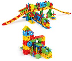 Детският конструктор от Mario Inex е подходящ за деца над 2-годишна възраст. Състои се от 433 едри, цветни елемента, измежду които вафлен конструктор, колелца и фигурки. Те са изработени от здрава пластмаса и с тях малчуганът може да сглоби ЖП гара, кула, замък, влак, коли и множество други. Играейки с комплекта, детето ще развива логическото си мислене, въображението си, координацията и цветоусещането си. Размерите на елементите са съобразени с малките детски ръчички. ... |