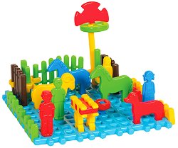 Детският конструктор от Mario Inex е подходящ за деца над 2 годишна възраст. Състои се от 31 цветни елемента, измежду които вафлен конструктор и фигурки за игра. Те са изработени от здрава пластмаса и с тях малчуганът може да сглоби собствена мини ферма. Играейки с комплекта, детето ще развива логическото си мислене, въображението си, координацията и цветоусещането си. ... |
