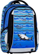 Ученическата раница "Mercury 7 B" от "Bagmaster" е чудесен подарък за всеки ученик. Тя разполага с 2 основни отделения, които се затварят с ципове. Те са предназначени за учебници, помагала и тетрадки. Също така има 1 преден джоб подходящ за съхранение на телефон, химикалки, несесери или други дребни вещи. Освен това в него има скрит по-малък джоб и карабинер за закачане на ключове. А страничните джобове са подходящи за шишета с вода или термоси. Раницата е в син цвят с картинка на акула. Може да комбинирате раницата с други аксесоари от серията "Bagmaster - Mercury 7 B". ... |