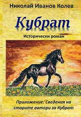 Исторически роман. Приложение: Сведения на старите автори за Кубрат. ... "Предисловие на издателя Кубрат е една от най-обаятелните личности в българската история. Още от 165 година след Христа Българската държава, намираща се на север от Дунава, воюва с Римската империя в съюз с други народи. Това води до масивно населване на Балканския полуостров с българи и участието им в културния, политически и стопанския живот на Византия. През шести-седми век едни българи са ударната сила на аварската държава, други са наемни войници федерати на Източноримската империя, трети отстояват независимостта си срещу тюрки, перси, ... |