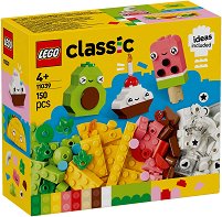 Конструкторът е част от серията LEGO Classic, където ще откриете още интересни комплекти. ... Децата ще се забавляват с конструктора от LEGO. Той се състои от 150 части, с които може да се сглобят невероятни вкусотии. Малчуганите ще се насладят на кекс, сладолед, авокадо и тако. Храните могат да се трансформират в напитка с чай, круша и панини. Децата могат да направят зелен сладолед, картонена кутия за сок, парче диня, шоколадово блокче и мега сандвич. Храните имат очи, устни и декоративни елементи. Завършените модели са подходящи за разиграване на ролеви игри и могат да се използват като декорация за детската стая. ... |