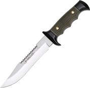 Ловният нож Scorpion на Muela притежава фиксирано острие, изработено от неръждаема стомана 420. Нехлъзгащата се дръжка е подходяща както при мокри условия, така и при много студено време или когато носите ръкавици, благодарение на пластмасовия еластомер, който се захваща много по-сигурно и предлага значително по-голямо сцепление от класическите дръжки, изработени от естествени материали. Предлага се в комплект с кожена кания. Характеристики: дължина на острието: 25.8 cm дължина на ножа: 37 cm дебелина на острието: 4.5 mm материал на острието: неръждаема стомана 420 материал на дръжката: пластмасов еластомер ...
