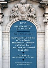 Critical Edition and Commentary of the Texts. ... Настоящото изследване представя обширен коментар на историческия, филологическия и топографския контекст на всички византийски документи и избрани укази и декрети от османския период, съхранявани в архива на манастира Каракал в Атон. Общият брой на представените документи, съставени в периода 1294 - 1835, е 28, като 17 от тях досега не са били публикувани. ... |