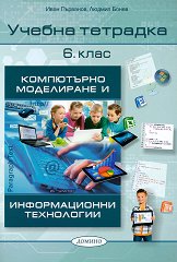 Учебникът е одобрен от МОН. ... "В този учебник са представени пълно и последователно всички седем основни теми от учебната програма по компютърно моделиране и информационни технологии за 6. клас. Текстовете и илюстрациите са съобразени с изучаваните теми и вашата възраст. В учебника има последователност и единност в употребата на термини, понятия и символи, както и цялостна художествена идея, което ще улеснява възприемането и връзката между уроците. Уроците, принадлежащи към една и съща основна тема са представени в цветово единство съобразно спецификата на предмета и изучаваната тема. За по-лесно ориентиране в ... |