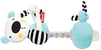 Плюшената дрънкалка на "Mom's Care" ще забавлява вашето бебче с веселият си дизайн и ярки цветове. Мечето е изработено от мек текстил с ярки цветове, които привличат вниманието на детето и развиват зрението му. "Коремчето" на играчката е под формата на пластмасова дрънкалка пълна с цветни топчета, която стимулира слуховите възприятия, а също така учи бебчето ви на причинно-следствена връзка. Благодарение на издължените крачета и ръчички можете да завържете играчката за детската количка или креватче. С дължина от 27 cm можете лесно да пренасяте Мечето, като по този начин то ще стане верен другар ...