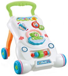 За да превърнете първите уверени крачки на прохождащото дете в забава, може да се доверите на проходилката "Cake". Тя е предназначена за бутане от деца над 9-месечна възраст. А за моментите, когато не се използва за подпомагане на ходенето, са предвидени няколко занимателни игри, като топки, които може да се съхраняват в кош под дръжката, а играчките оформени като торта, ябълка и близалка могат да се отделят за самостоятелно ползване. Всичко това ще забавляват детето часове наред, усъвършенствайки неговите умения и развивайки фината му моторика. Музикалната проходилка за бутане има образователна цел и се ... |