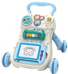 Проходилката за бутане тип уокър ще превърне първите крачки на бебето в истинско забавление, подпомагайки развитието на сетивата и фината моторика. Тя е снабдена със стабилна конструкция и неплъзгащи се колела, които осигуряват сигурност и безопасност на малчугана. В предната част на проходилката е разположен панел с музикални и светлинни ефекти, както и дъска за рисуване, които допълнително ще забавляват вашето дете. А за да се осигури максимална безопасност на бебето са предвидени гладки ръбове и удобна дръжка, осигуряваща оптимална опора. За функциите на панела ще са ви необходими 2 батерии тип 1.5V AA, които може да ... |