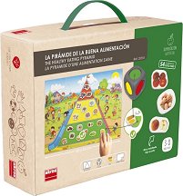 Играта е асоциативна и се играе чрез хвърляне на зар, като в зависимост от цвета, който се падне, се попълва пирамидата с карти със съответния тип храна. Цвета на храните е базиран на това, колко често трябва да се ядат те - зелено - често, жълто - понякога, червено - от време на време (рядко). След сглобяване, пирамидата е с размери 67 x 46 cm и заедно с другите неща от комплекта се съхраняват удобно в пластмасово куфарче. Метод на игра и препоръки: Залепете цветните стикери върху страните на зара - 3 зелени, 2 жълти и 1 червен. Подредете пъзела-пирамида. Поставете картите с храна с лицето на горе и ги ... |