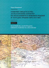 Неврокопска каза. Настоящият труд, като трета част от изследването, посветено на българските езикови следи в Беломорието и Южните Родопи през XVI в., представя антропонимни и ойконимни данни за българското християнско население в някогашната Неврокопска каза, открити в османски данъчни регистри с датировка 1569 - 1570 г. Териториалната единица Неврокопска каза включва части от Югозападните Родопи (дн. Гоцеделчевско), включително областта Чеч, както и районите на Южен Пирин, на Зърневското поле и Белотинската долина. Към нея спада също част от историко-географската област Мървашко. Последните три района, както и южната ... |