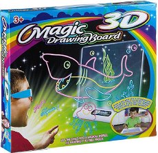 Благодарение на комплекта вашия малчуган ще може да развива творческите си умения по един забавен начин. Той съдържа дъска за рисуване, шаблони с морски обитатели, 3D очила, 4 флумастера, салфетки за почистване и поставка с вграден LED модул. Преди да започне да рисува, детето трябва да си избере шаблон, който да постави на прозрачната основа. След като приключи с рисуването, може да сложи 3D очилата и да включи LED модула, за да види как картината оживява. LED модулът работи с 4 броя батерии 1.5V AAA, които се закупуват отделно. Дъската е с приблизителни размери 35 / 25 / 5 cm. ...
