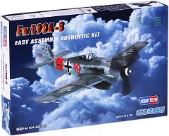 Умален модел на военен самолет - Fw190A-8. Fw190A-8е едномоторен, едноместен самолет изтребител на Луфтвафе от Втората световна война и един от най - добрите на своето поколение. Произведени са над 20000 бройки, включително 6000 фронтови изтребители-бомбардировачи. Самолета се произвежда от 1941 година до края на войната, като през това време е модернизиран и подобряван многократно. Производството на Fw190A-8 започва през февруари 1944 година, това е версия с подобрена броня и въоръжение. До края на войната са построени 1334 бройки. За да може да сглобите и залепите този макет, ви е необходимо лепило. Елементите на ... |