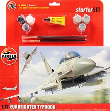 Умален модел на военен самолет - Eurofighter Typhoon - многоцелеви изтребител с предно хоризонтално оперение. Typhoon e разработен и произвеждан от консорциума Eurofighter GmbH, създаден през 1986 г. от фирмите Alenia Aeronautica, BAE Systems и EADS. В момента се произвежда серийно. Самолетът е на въоръжение в германските военновъздушни сили, военновъздушните сили на Италия, Испания и Великобритания. Австрия поръчва 15 изтребителя Тайфун, а Саудитска Арабия подписва контракт на стойност 4,43 милиарда фунта стерлинги за доставката на 72 самолета. Изтребителят е бил на въоръжение и в кралските военновъздушните сили на ... |