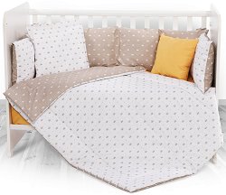 Със спалния комплект с 2 лица на Lorelli без усилие ще превърнете креватчето на вашето бебе в уютно и красиво място за сън и забавни игри. Той е изработен от 100% висококачествен памучен ранфорс, а пълнежът на олекотената завивка, възглавницата и обиколника е от мека 100% полиестерна вата, която е абсолютно безвредна за децата. Отделните части на обиколника са снабдени с удобни връзки, чрез които лесно можете да ги закрепите за предпазните решетки на бебешкото креватче, като по този начин обиколникът обгръща вътрешната страна на леглото и предпазва бебето от евентуален удар в решетките. Обиколникът е с обща дължина 420 ... |