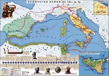 Историческа карта на Пуническите войни 264 - 146 г. преди Христа. Размер на картата: 140 x 100 cm. ... |
