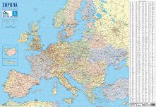 Съдържа: държавни граници отделните държави са оцветени в различни цветове подробна пътна мрежа с разстояния в километри 5200 населени места таблица с разстояния в километри индекс на по-големите градове Размер: 140 / 100 cm. ... |