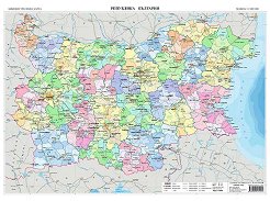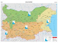 Характеристика на картата: размери: 59 х 45 cm; мащаб на Административна карта на Република България: М 1:1 000 000; мащаб на Природногеографска карта на Република България М 1:1 000 000; лайсни по дългата страна. Съдържа: физикогеографска карта на Република България с отбелязани залежи на полезни изкопаеми; административна карта на Република България с области и общини. ... |