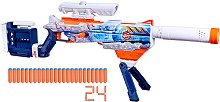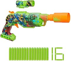 Бластерът от Nerf е подходящ за разиграване на ролеви игри като атакуване на зомбита. В комплекта са включени подвижен мерник и 16 стрелички, изработени от пяна. Бластерът има въртящ се цилиндър, разположен върху основата на оръжието. В основата могат да се поставят 5 стрели. Оръжието е декорирано с цветни графити. Дайте шанс на малчуганите да подобрят своите рефлекси и бързина, докато се забавляват. Важно: Препоръчително е да се използват предпазни очила Nerf при игра с бластера. ... |