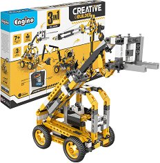 Конструкторът е част от серията Creative Builder, където ще откриете още сглобяеми комплекти по темата. ... Колекцията от превозни средства на вашия малчуган никога не е достатъчно голяма и винаги има място за още някое ново попълнение, нали? Е, от Engino ви предлагат интересно решение на проблема! Конструкторът дава възможност на детето да си сглоби не една, а цели 3 строителни машини. Той се състои от 192 пластмасови елемента, а също и картинни инструкции, с помощта на които малчуганът ще може да сглоби 3 различни строителни машини - самосвал, багер и колесен товарач. Елементите се захващат лесно помежду си без да е ... |