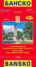 На български, английски, гръцки и руски. Tested by GPS. 3D Map. ... Град Банско се намира в подножието на Пирин, в югозападната част на Разложката котловина, на 936 м. н.в. Разположен е на огромен наносен конус, образуван от река Глазне - десен приток на Места. Селището се обособява през през IX-X в. от групирането на няколко махали. До XVIII век банскалии са предимно животновъди и занаятчии. През Възраждането градът се утвърждава като значителен търговски и занаятчийски център с просторни пазари в най-големите градове на Европа. Карта на Банско съдържа: туристически гид; национален парк "Пирин"; маршрути. ... |