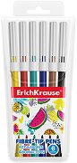 Комплектът на Erich Krause съдържа 6 цвята флумастери. Те притежават полипропиленово тяло, което не образува остри ръбове при счупване и предотвратява изсъхването на мастилото. Затварят се с вентилирана бяла капачка. Мастилото им е на водна основа, няма мирис и се мие лесно от повечето повърхности. Флумастерите притежават фин връх, който не се прибира навътре, дори при по-силен натиск. Те са подходящи за рисуване, оцветяване на по-големи площи и създаване на по-дребни детайли. Могат да се използват както у дома, така и в училище или извънкласни дейности. Съхраняват се в прозрачна опаковка за удобно пренасяне, като ... |