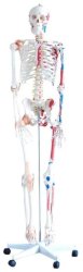 Моделът на човешки скелет може да се използва за визуални примери в часовете по анатомия. Той демонстрира основните артерии и периферните нерви на човешкото тяло. Моделът е придружен от метална стойка, към която може да се прикрепи. Частите на скелета включват кости на главата и шията, кости на туловището, гръден кош, гръбначен стълб, седалищна област, кости на горния крайник и кости на долния крайник. Моделът е подходящ за обучение по биология в училища и университети. С него могат да се изучават теми като: Устройство на опорно-двигателния апарат Свързвания между костите Класификация на костите Фрактури и ... |
