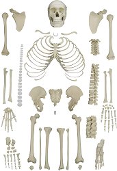 Моделът на човешки скелет може да се използва за визуални примери в часовете по анатомия. Той има подвижни крака, които могат да се сгъват в колената. Черепът има части, които могат да се отделят и да се разгледат. Ръцете и краката също могат да се отделят от скелета. Моделът е придружен от метална стойка, към която може да се прикрепи. Частите на скелета включват кости на главата и шията, кости на туловището, гръден кош, гръбначен стълб, седалищна област, кости на горния крайник и кости на долния крайник. Моделът е подходящ за обучение по биология в училища и университети. С него могат да се изучават теми като: ... |