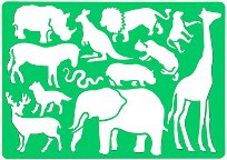 Шаблон за очертаване на животните от Африка. Изработен е от прозрачна, зелена пластмаса, която позволява лесно позициониране върху листа хартия. С този шаблон могат да бъдат очертани фигури на: слон жираф лъв кенгуру кон елен змия вълк носорог маймуна ... |