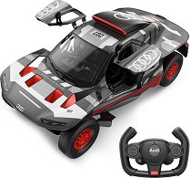 Audi RS Q e-tron E2 е офроуд превозно средство, специално разработено за маратонски ралита от прототипния клас Audi Sport и използвано в рали Дакар от 2022 година. Сега мечтата да караш такава кола може да се сбъдне с официално лицензирания модел от Rastar. Моделът впечатлява с перфектно възпроизведени оригинални детайли по шасито и каросерията, както и с интериор, който имитира истинския автомобил. Изработен е с високо качество и осигурява усещането, че държиш истински спортен автомобил в ръцете си. С дистанционно управление на честота 2.4 GHz можеш да управляваш колата напред, назад, наляво и надясно и да достигаш ... |
