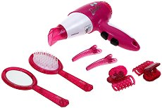 Има нещо, което никой, никога не е виждал до този момент и това е кукла Барби, която не е с перфектна прическа. И това е така, защото тя винаги има под ръка комплект от четка, сешоар, огледало и шнолки, с които да поддържа в перфектен вид златните си коси. Точно това съдържа и комплектът от немската компания “ Klein ”, който ще помогне на младите госпожици да са винаги красиви в Барби-стил. Сешоарът в комплекта работи с една батерия 1,5V, AA, която не е включена. Детската играчка произвежда въздушна струя, която не е с висока температура и не би увредила детската коса. ...