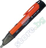 Безконтактният фазомер на Premium разполага с потенциометър, който измерва променливо напрежение (AC) с обхват 90 - 1000 V. Фазомерът отчита напрежение от разстояние на кабели, клеми, контакти, електрически табла и други. Снабден е със звукова и светлинна индикация и разполага с LED лампа за осветяване на работната зона. Инструментът се захранва от 2 батерии AAA 1.5 V (закупуват се отделно) и се изключва автоматично след употреба. ...