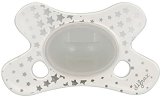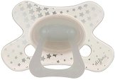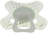 Залъгалката Natural от серията Glow in the Dark на Difrax се отличава с това, че фосфоресцира в тъмното, а това я прави подходяща за използване през нощта, тъй като е лесна за намиране в бебешкото креватче. Тя е подходяща за бебета над 12 месеца, а биберонът ѝ е изработен от мек и прозрачен силикон без вкус, мирис и алергени. Той има плоска основа и заоблен и изпъкнал връх, а симетричната му форма осигурява лесно приемане от бебето. Биберонът е идеален за бебета, които могат да го въртят в устата си. Освен това размерът на щита и на силиконовия биберон са специално проектирани за бебета над 12 месеца. ...