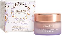 Специалистите от Lumene ви предлагат крем, който подхранва и овлажнява деликатната кожа около очите. Формулата спомага за намаляване появата на тъмни кръгове, фини линии и бръчки*. При редовна употреба, кремът подобрява стегнатостта на кожата около очите и ѝ придава сияен младежки вид. Притежава копринено гладка и лека текстура. Подходящ е за всеки тип зряла кожа. Формулата на околоочния крем Lumene Ajaton съдържа 96% съставки от естествен произход**. Тя е обогатена с арктическа изворна вода с благоприятно за кожата pH, която действа овлажняващо и съживяващо. Вложени са екстракт и масло от червена боровинка, ... |