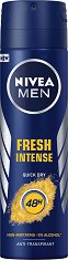 Дезодорантът "Fresh Intense" от "Nivea" предпазва от изпотяване и от появата на неприятни миризми до 48 часа*. Текстурата изсъхва бързо и оставя чувство за комфорт и свежест през целия ден. Формулата е без съдържание на етилов алкохол и е грижовна към кожата. Обогатена е с екстракт от лайка, който има антисептични, противовъзпалителни, регенериращи, почистващи и тонизиращи свойства. Той хидратира, успокоява и омекотява кожата. Съвместимостта на дезодоранта с нея е дерматологично одобрена. Характеристики: осигурява дълготрайна свежест надеждна 48-часова* защита против изпотяване изсъхва бързо ... |