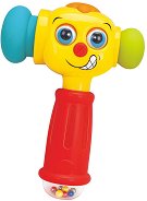 Бебешката дрънкалка е във формата на чук и ще зарадва вашето мъниче. Тя е изработена от пластмаса и е удобна за хващане от малките детски ръчички. В горната част дрънкалката разполага със сфера пълна с малки топчета, които ще издадат забавен звук, когато малчугана разклати играчката. Чукът разполага с безопасна гумена страна, с която детето може да чука различни повърхности. Играта с играчката ще развие двигателните умения и координацията око-ръка на вашият малчуган. ... |