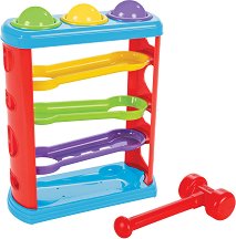3, 2, 1... Старт! Нека състезанието да започне сега! А коя ли топка ще стигне по бързо до финала - червената, жълтата, синята или зелената? Забавната писта от Pilsan е подходяща за деца над 1-годишна възраст. Тя е изработена от пластмаса, оцветена в ярки и контрастни цветове. Комплектът се състои от писта с 3 отсечки разположени една под друга, 3 цветни топки в зелен, жълт и син цвят, и чукче. Поставете цветните топки в стартова позиция и ги ударете с чукчето. Те ще се засилят по първата отсечка, а след това ще преминат през отвора към следващата. Пистата е с размери 23.5 / 31.5 / 11 cm. ... |
