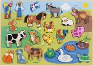 Дървеният пъзел от Djeco е чудесна образователна игра за най-малките, която ги запознава с познати селскостопански животни по забавен и интуитивен начин. Детето подрежда 22-те дървени части, като ги съпоставя със съответните силуети върху основата, което прави играта лесна и насърчава самостоятелното откриване. Ярките цветове под всяка част служат като визуална подсказка и помагат на децата бързо да намерят правилното място, а дебелите дървени елементи са специално проектирани за лесно хващане от малките ръчички. Пъзелът подпомага развитието на фината моторика, координацията око-ръка и уменията за разпознаване и ... |
