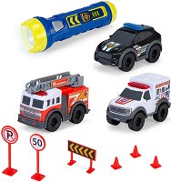 Играчката е част от серията SOS, където може да намерите още интересни комплекти. ... Пригответе се за спешна мисия с комплект от Dickie – перфектният избор за малки спасители и любители на превозни средства. Комплектът включва три официално лицензирани спасителни автомобила - пожарна кола Rosenbauer Viper, полицейска кола Ford Mustang Mach-E и линейка Ford F450 – всяка с дължина около 8 cm и със свободен ход за плавно движение по пода. С добавените пътни знаци, конуси и бариера, децата могат да изграждат собствени спасителни сцени – от пожарни ситуации до полицейски блокади и медицински спасявания. Играчките ... |