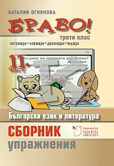 Този сборник за 1. клас е създаден по молба на преподаватели в начална образователна степен. Сборникът съдържа само оригинални авторски текстове, написани с доказан творчески и методически професионализъм от Наталия Огнянова. Сборник Браво! е разработен за 1. клас в 5 части. Първата част съдържа: над 300 богато илюстрирани разнообразни задачи и подзадачи за самостоятелни практически упражнения в буквения период на обучение; самодиктовки; задачи за звуков и буквен анализ; граматични упражнения; задачи за съзнателно четене. Учебно-помощната система по български език и литература за 1. клас на издателство ... |