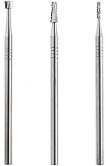 Комплект от 3 броя твърдосплавни мини фрезера, изработени от волфрамов карбид. Предназначени за точно, безвибрационно фрезоване на твърди материали като: стомана, цветни метали, твърди пластмаси и дърво. За да се постигне максимална точност при работа е препоръчително използването на стоманени цанги. Шпиндел: ∅ 2.35 mm. ... |