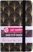 Скицникът Art Deco от серията Art Creation на Royal Talens е идеален за рисуване, скициране или водене на дневник. Съдържа 80 листа с плътност 140 g/m 2. Хартията е изработена без съдържание на киселина, има гладка текстура в снежно бял цвят. Подходяща е за използване с молив, пастел, акрил, гваш, мастило, въглен. Плътността ѝ позволява нанасяне на вода в умерени количества, с леки отмивания на акварелни маркери и моливи. Скицникът има твърди корици с Арт деко декорация в черно и златисто. Затваря се с плосък ластик по периферията. Оборудван е със сатенен разделител за отбелязване на страницата. ... |